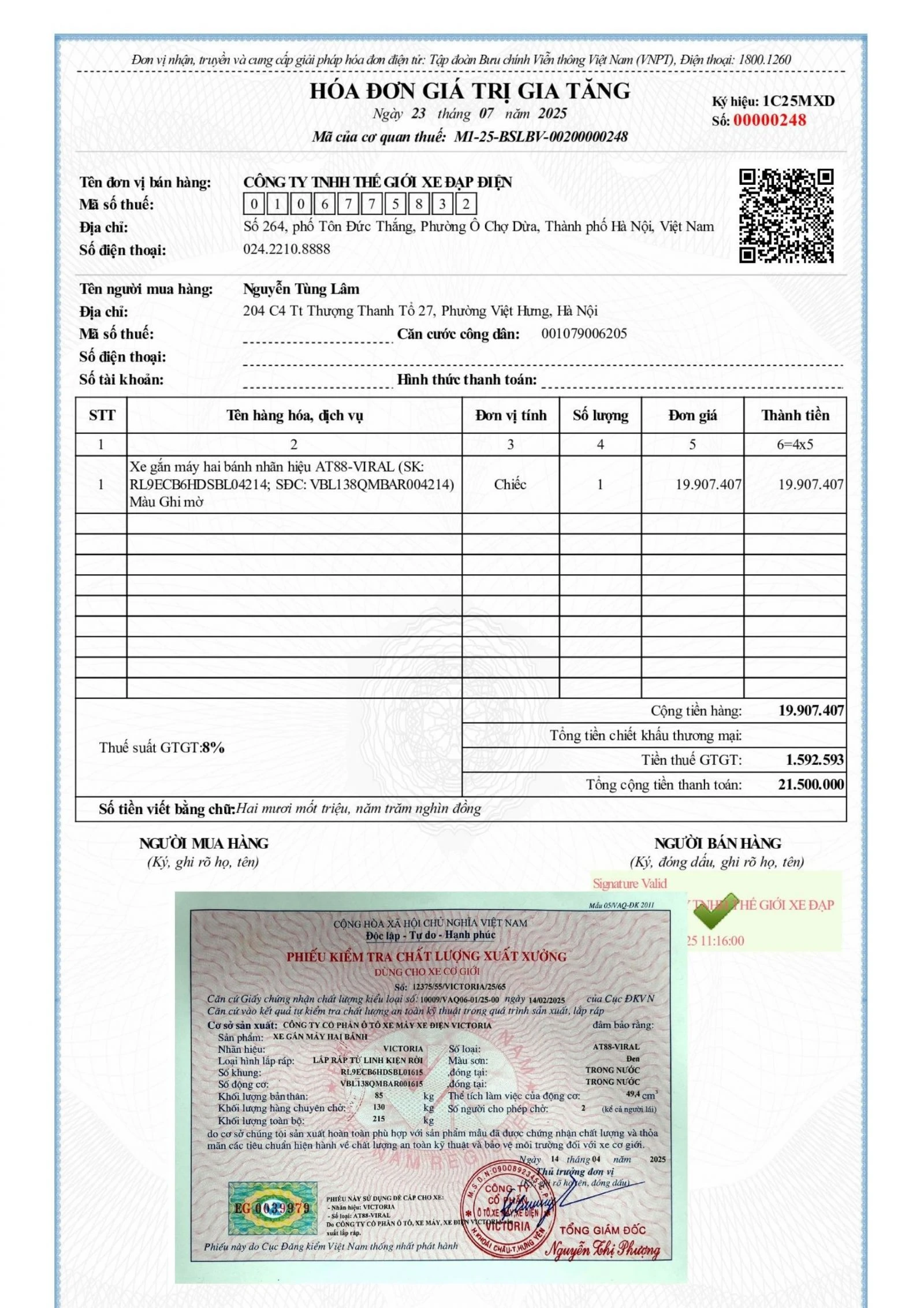 Xe Ga 50cc Victoria AT88 Viral có đầy đủ giấy tờ đăng kiểm và hóa đơn.