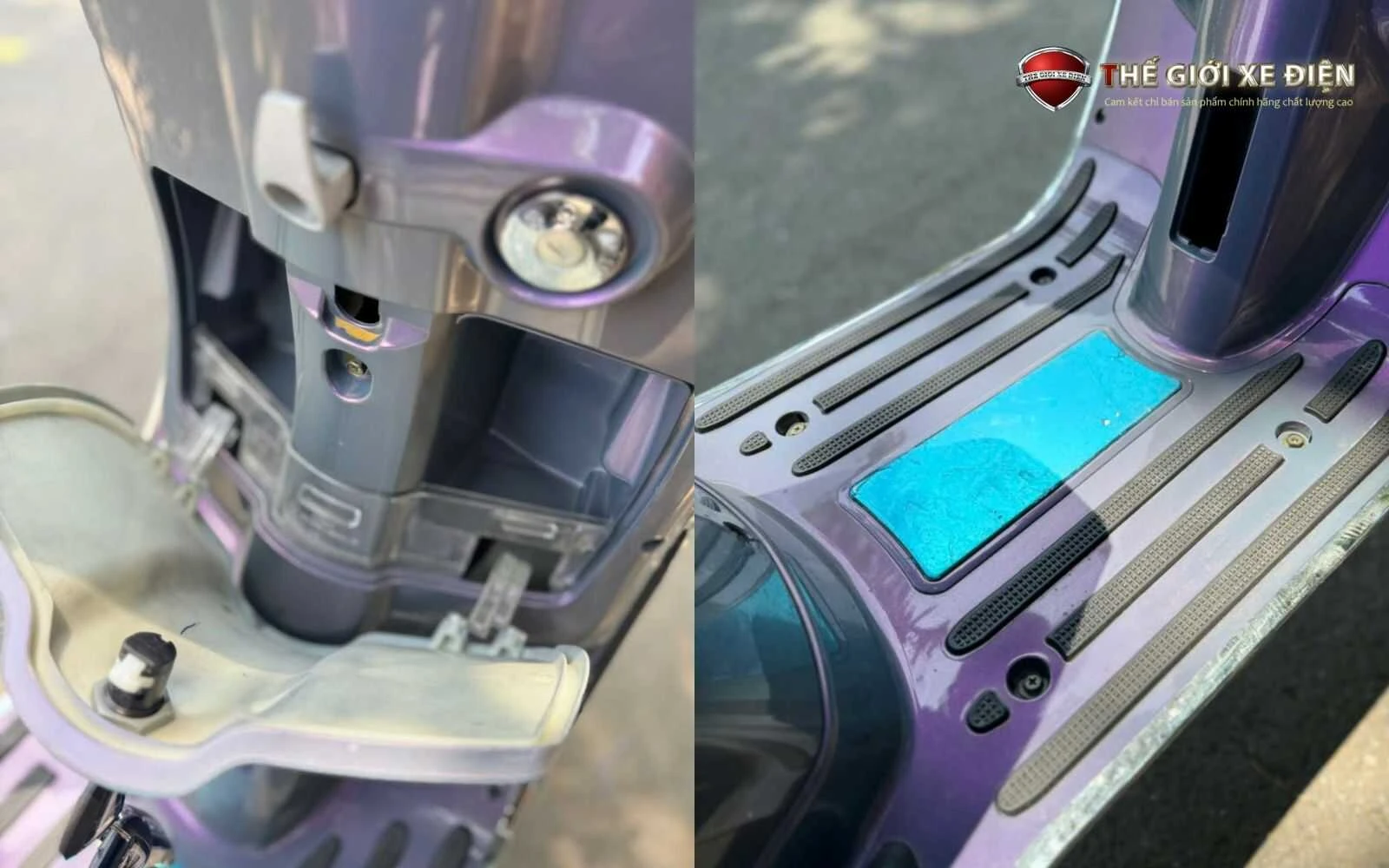 Sàn để chân rộng dãi được làm từ nhựa ABS và sơn giúp chiếc xe nhìn hiện đại , sạch sẽ không bị bám bẩn ,đây là trang bị đắt tiền hơn nhiều so với sàn để chân được làm từ nhựa nhám PP truyền thống. Các phiên bản xe máy điện DIBAO mới đây cũng cải tiến phần nhựa này để xe hoàn thiện và đẹp mắt hơn so với các phiên bản đời 2022-2023.