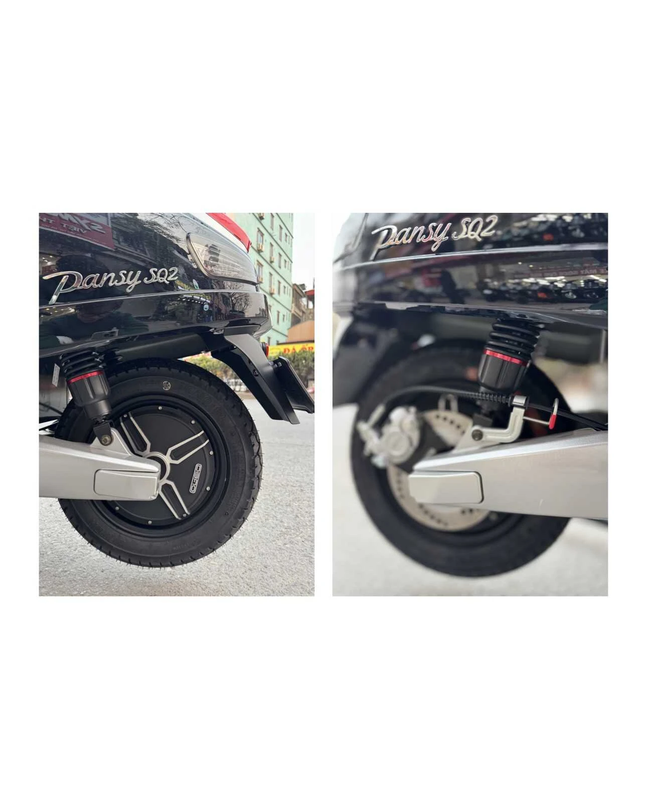 Cùng với hệ thống động cơ siêu khỏe, chiếc xe máy điện Pansy SQ Dibao này cũng được trang bị thêm hệ thống đảm bảo an toàn cho người lái cực kỳ hiệu quả. Xe có vận tốc tối đa cao nên trang bị phanh kèm theo có thể giúp người lái yên tâm vững tay lái, với hệ thống phanh đĩa trước sau hoạt động nhịp nhàng và vô cùng nhạy bén. Thiết kế bánh xe là lốp không săm, có diện tích tiếp xúc mặt đường lớn tăng ma sát và độ bám đường, vận hành an toàn và chắc chắn hơn. Trọng tải lớn cũng giúp bảo vệ động cơ trong quá trình sử dụng lâu dài. Hệ thống giảm xóc là ống lồng, lò xo trụ đơn giảm chấn thủy lực hoạt động giúp xe chạy êm ái trên khắp nẻo đường.