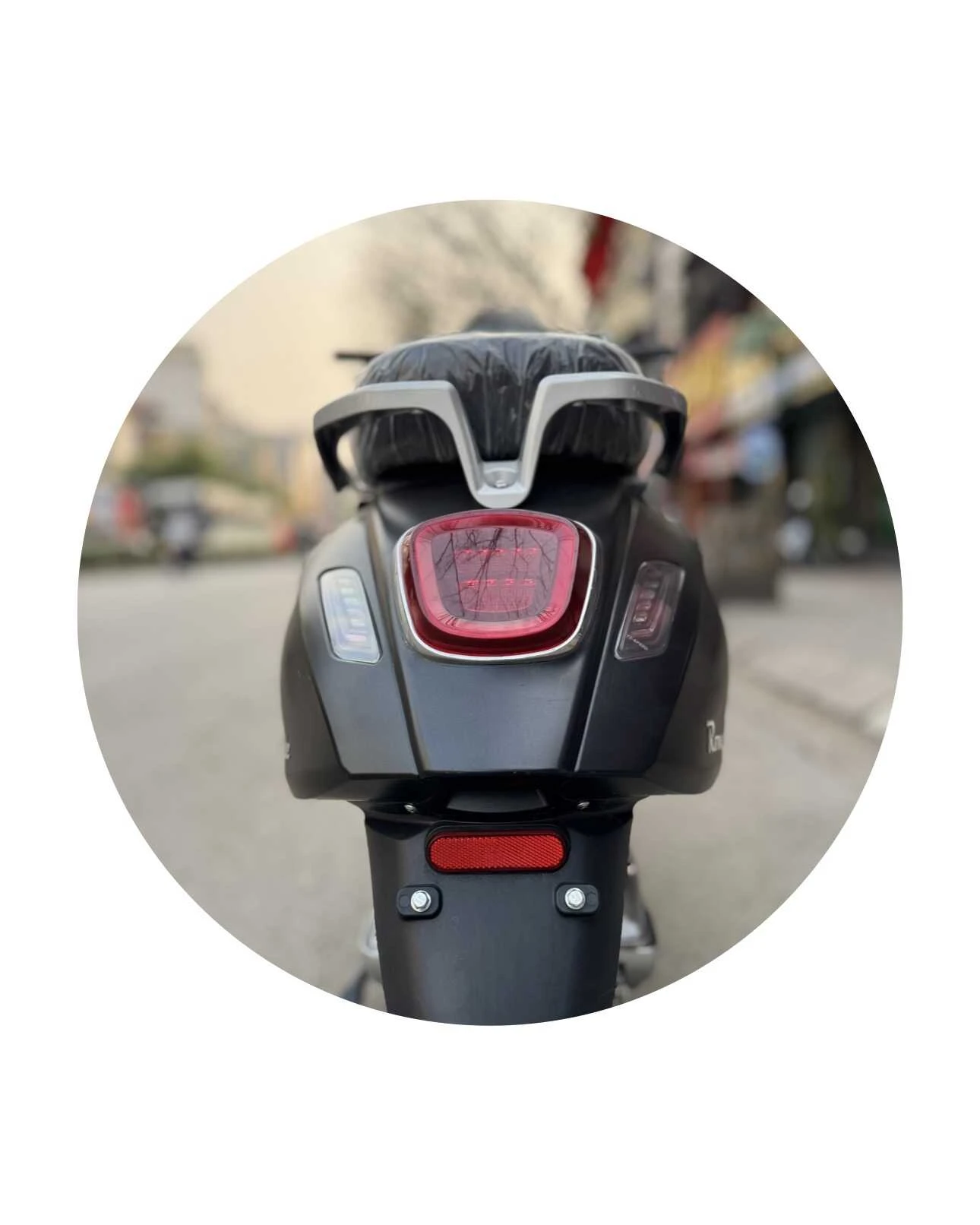 Đuôi xe được thiết kế bo tròn tinh tế, toát lên vẻ mềm mại và thanh lịch, gợi nhớ đến dáng vẻ sang trọng của những chiếc Vespa Ý cổ điển