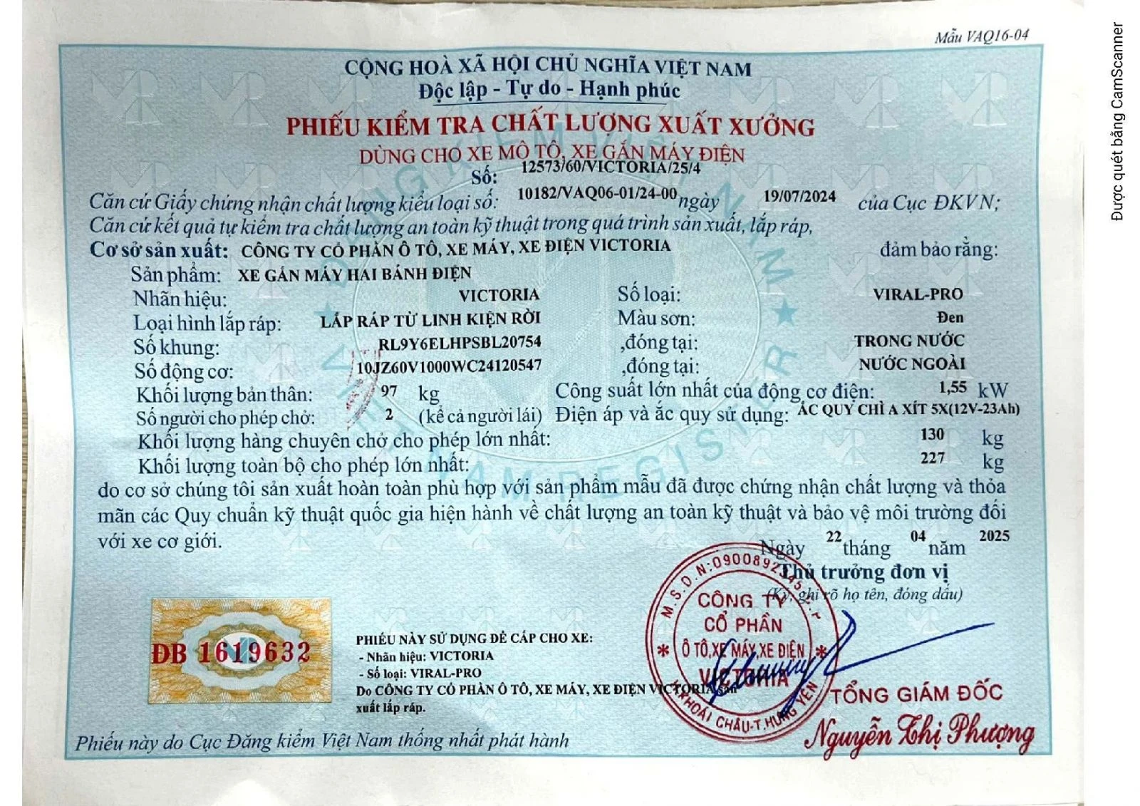 Xe máy điện Osakar Nispa Viral Pro có đầy đủ giấy tờ đăng kiểm và hóa đơn.