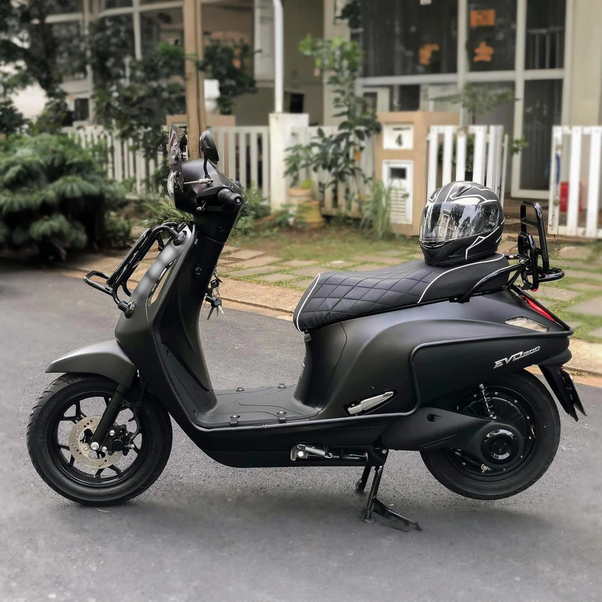 Xe Evo 200 sử dụng phanh đĩa bánh trước, các cặp phuộc giảm xóc trước-sau, lốp không săm vành đúng ba chấu,… Tất cả giúp mang đến khả năng vận hành chắc chắn, ổn định, an toàn cho người sử dụng