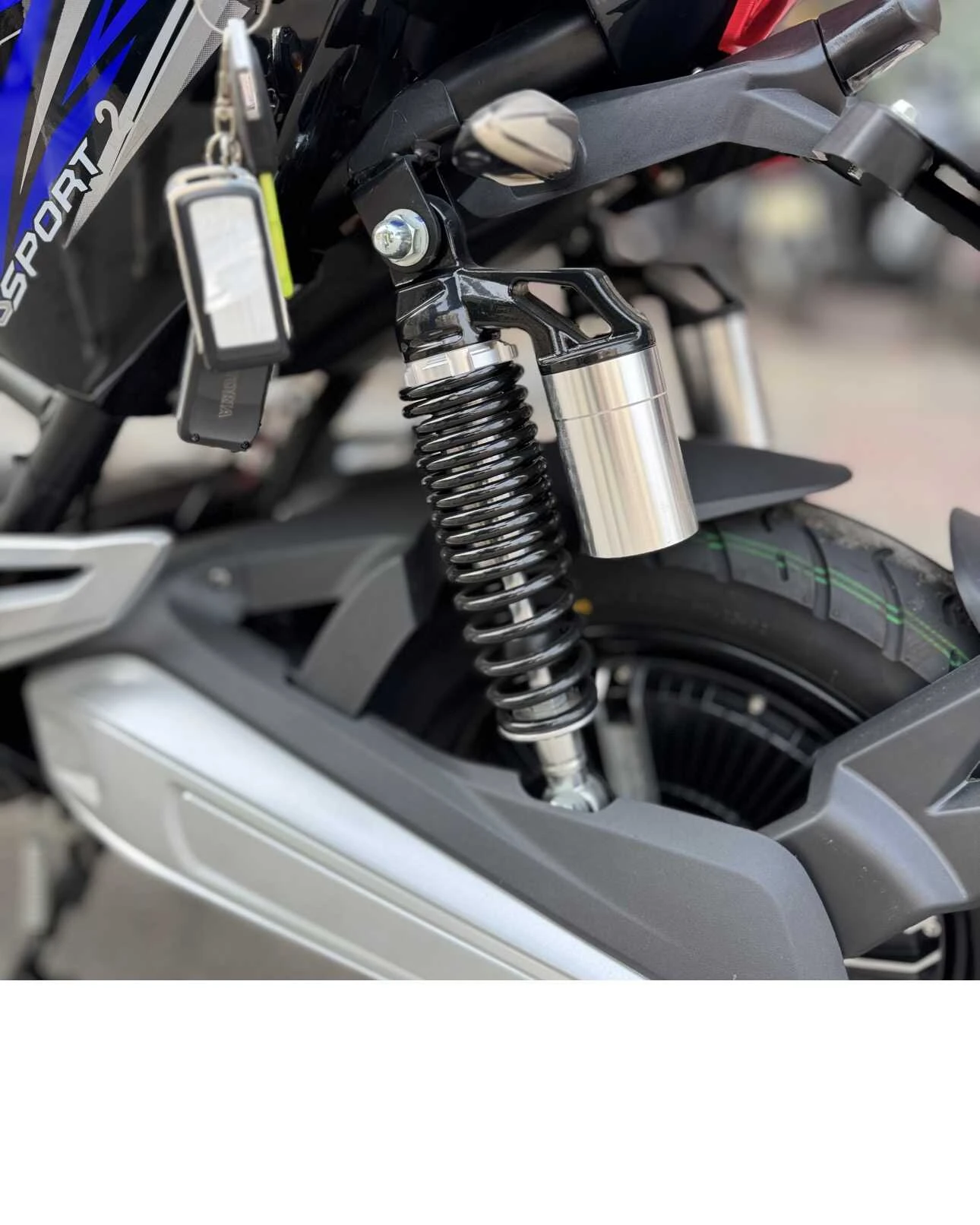 - Hệ thống giảm xóc siêu êm với công nghệ giảm chấn thủy lực đời mới. Với phuộc nhún trợ dầu trước và cặp lò xo trụ phía sau giúp xe chịu tải trọng khỏe cũng như chạy êm ái trên mọi nẻo đường.